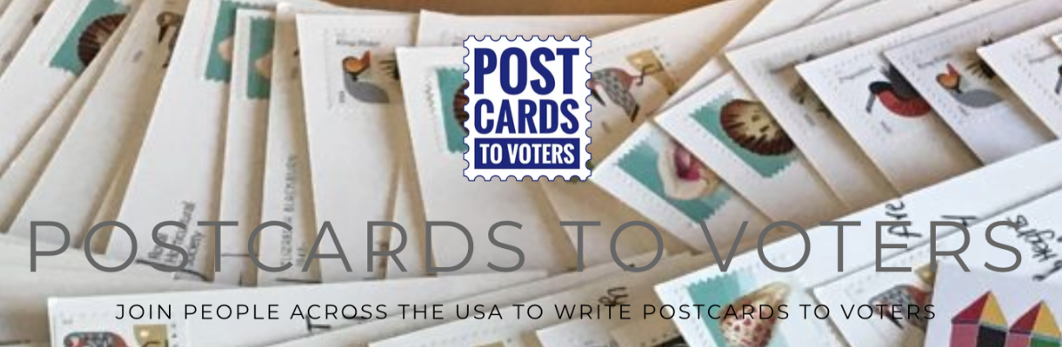 It is a perfect activity for grassroots volunteers who prefer the non-threatening activism of writing postcards, versus knocking on doors or making phone calls. Once accepted, you get a list of addresses and the exact text, usually three bullet points, to write on the postcards. You provide the postcard* and the stamps; you can write alone or create postcard-writing parties with friends.
