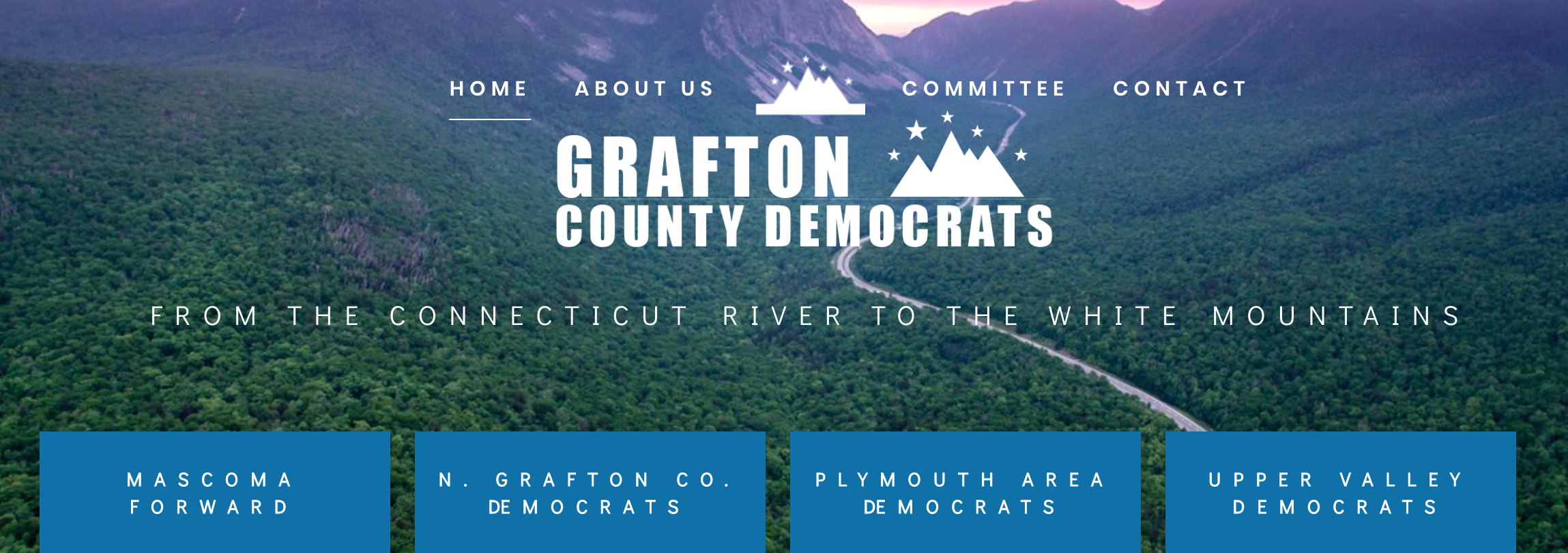 Grafton County is the second largest county in New Hampshire by area. Because of our unique geography, we are split into 4 regional committees; Mascoma Forward, Northern Grafton County Democrats, Plymouth Area Democrats and Upper Valley Democrats.